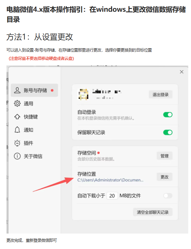 - 操作路径:进入微信“设置” -> “账号与存储” -> “存储位置”,点击“更改”选择目标位置。