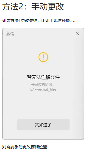 - 找到微信目前的存储目录(通常在方案一失败提示中会显示原路径,如